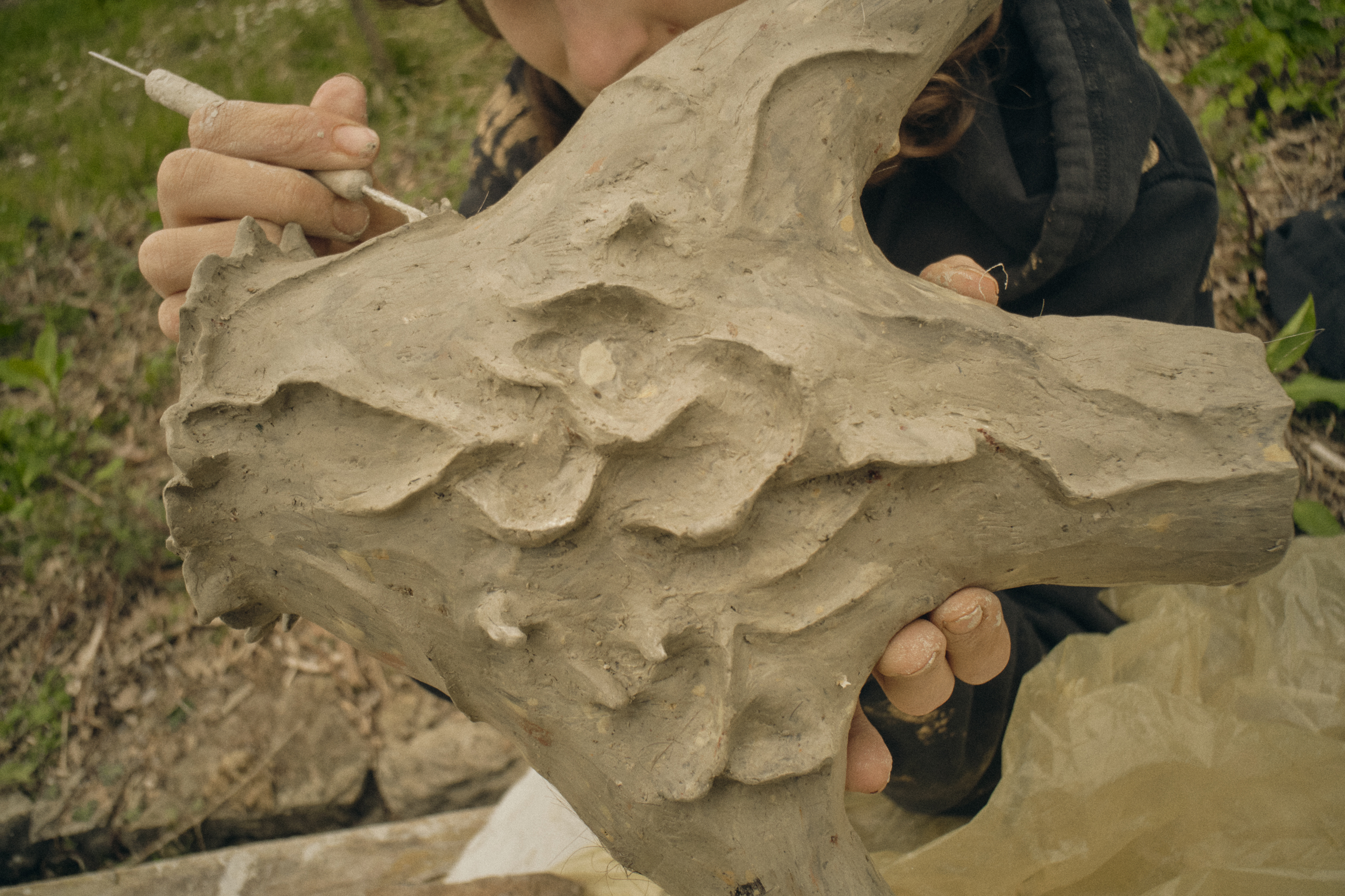 A final exhibition was held at Pian della Chiesa. During the event, the artists guided visitors to a Cavaneo using and activating the ceramic tools. Once they reached the Cavaneo, visitors were given small clay coins as offerings, and together, the group sealed the entrance of the Cavaneo with a large engraved stone slab, marked by all the artists. Through this gesture, the project reactivates the historical function of the Cavanei, reinterpreting them in a contemporary way and giving these structures new life and meaning, in the same way as many other cilivazions have done so in the past.